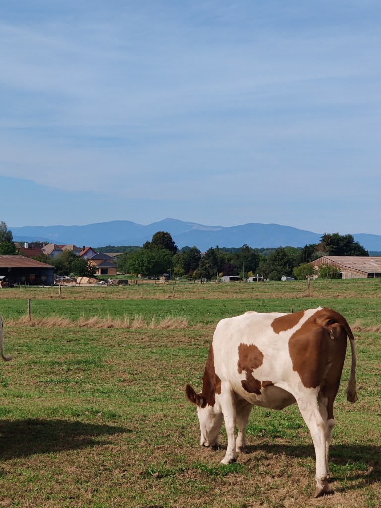 At some point after my lunch break I cycled up a hill and was met with this beautiful scenery where I could see the Vosges mountains from a far.