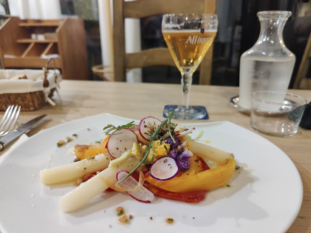 When I came towards the grotte I found hundreds of people there and I was a bit disappointed how this place was used. I didn’t spend much time there, also the spring water they offered was an attraction that I didn’t want to experience. After a short inner calmer moment I centred myself at the river and decided this was not my place to be, even though I respect that place of power. I left to drink a coffee and decided to treat myself with a quiche Lorraine and a crêpes to treat myself.