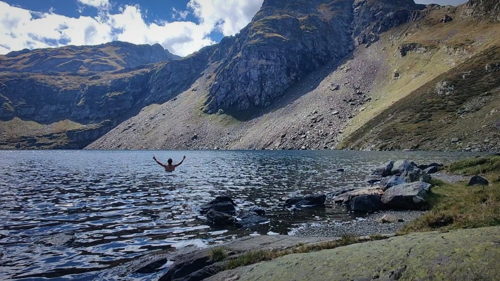 And as most of you know me there is no mountain lake or creek that I would not jump in, no matter how cold it was. The people passing thought I was a bit crazy as it was not warm and windy, you can’t see that on the pictures.