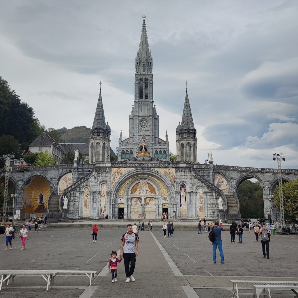 Finally arriving in Lourdes I was curious about the grottes and the energy of the place. I didn’t know what to expect. I was passing through a lot of touristic avenues and luckily could park my bike aside the security hut of the entrance to the area of the grotte. I was very impressed by the cathedral they built there, it was massive and you could see that thousands of people could be hosted there. There were several masses happening, in front of the church, inside, up down, everywhere!
