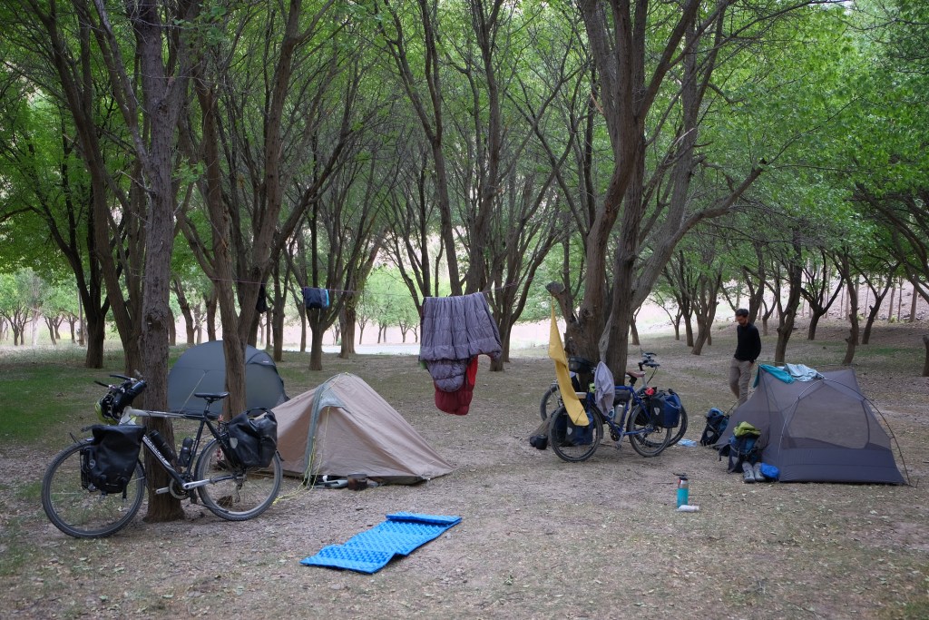 It was Wednesday morning, we had planned to leave early to make use of the colder temperatures and magically my alarm didn’t go off. I ran down the stairs to see where and how my colleagues were doing and apologized for being late. Something that could only happen to me. After rushing back and forth to get my bike loaded and preparing everything to get started, we finally hit the road and made a stop for a conscious start at the Registan Square in the centre.